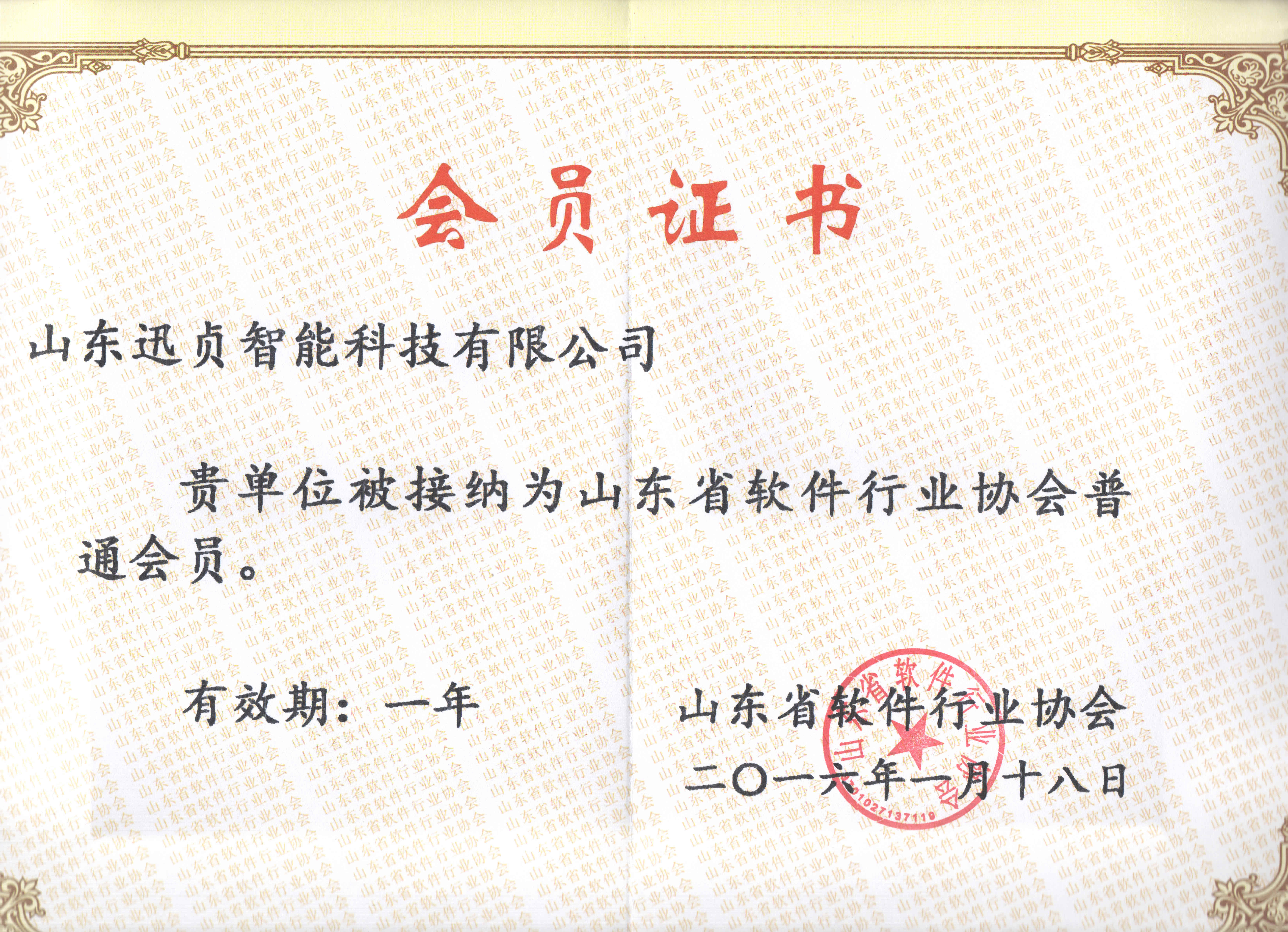 我公司正式被接纳成为山东软件行业协会普通会员。