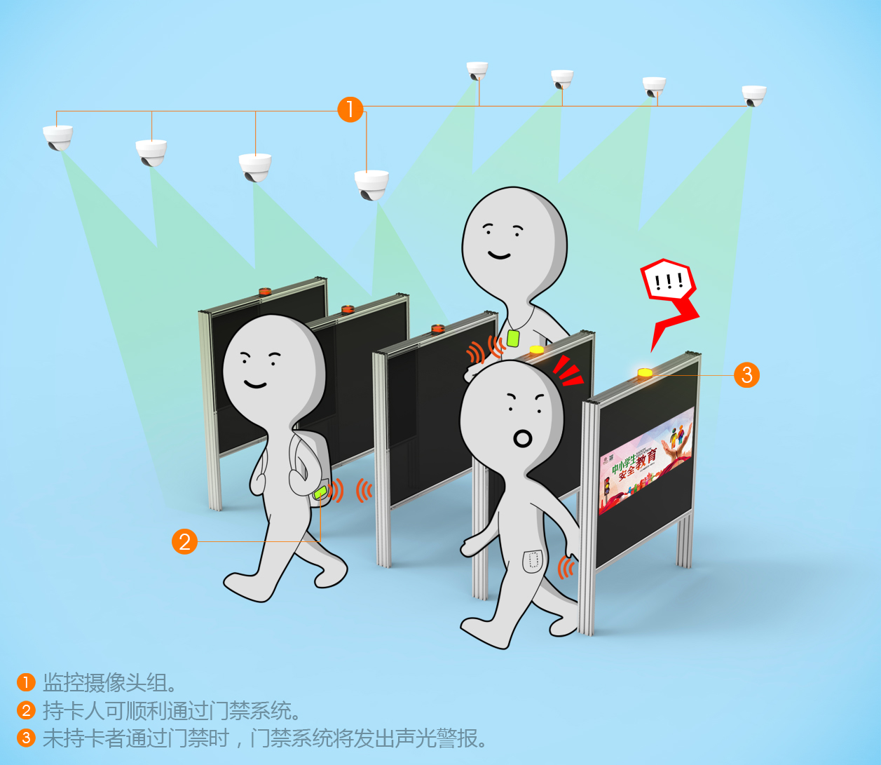 防止尾随:杜绝不法人员跟随前面通过身份验证人员试图进出的行为。